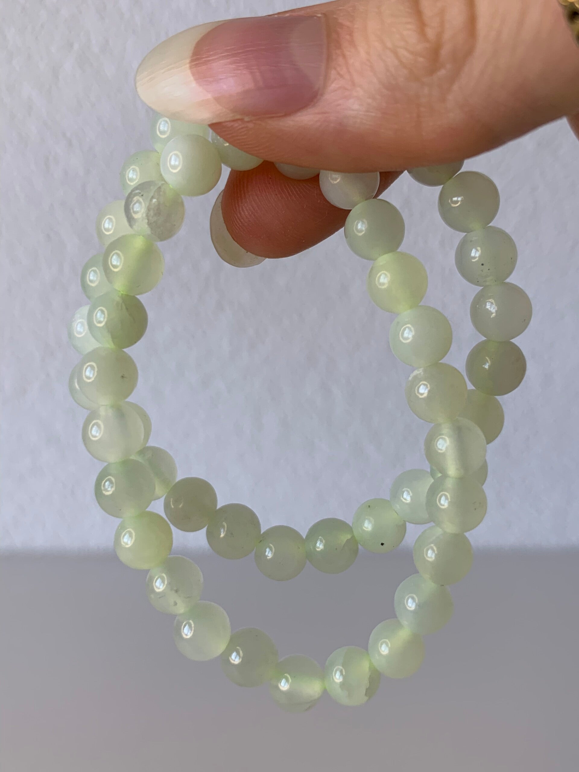 Armband van serpentijn met een kleinere polsmaat, geschikt voor kinderen. Deze steensoort wordt ook wel 'new jade' genoemd. De prijs is per stuk.