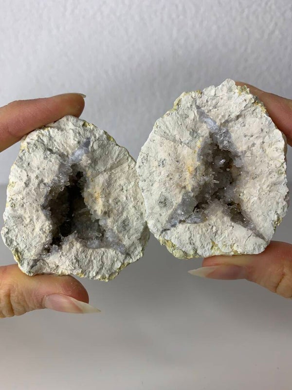 Let op! Elke geode is anders, de foto's zijn ter voorbeeld. Ook is het is mogelijk dat jouw geode niet perfect door tweeën breekt. De prijs is per stuk. Hij wordt voor je gekraakt!