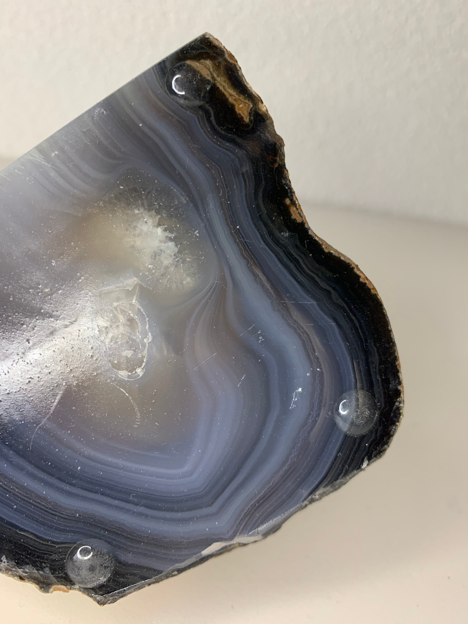 Prachtige blauwe agaat theelicht houder.Hij is aan de voorkant en onderkant gepolijst. De onderzijde is voorzien van nopjes.