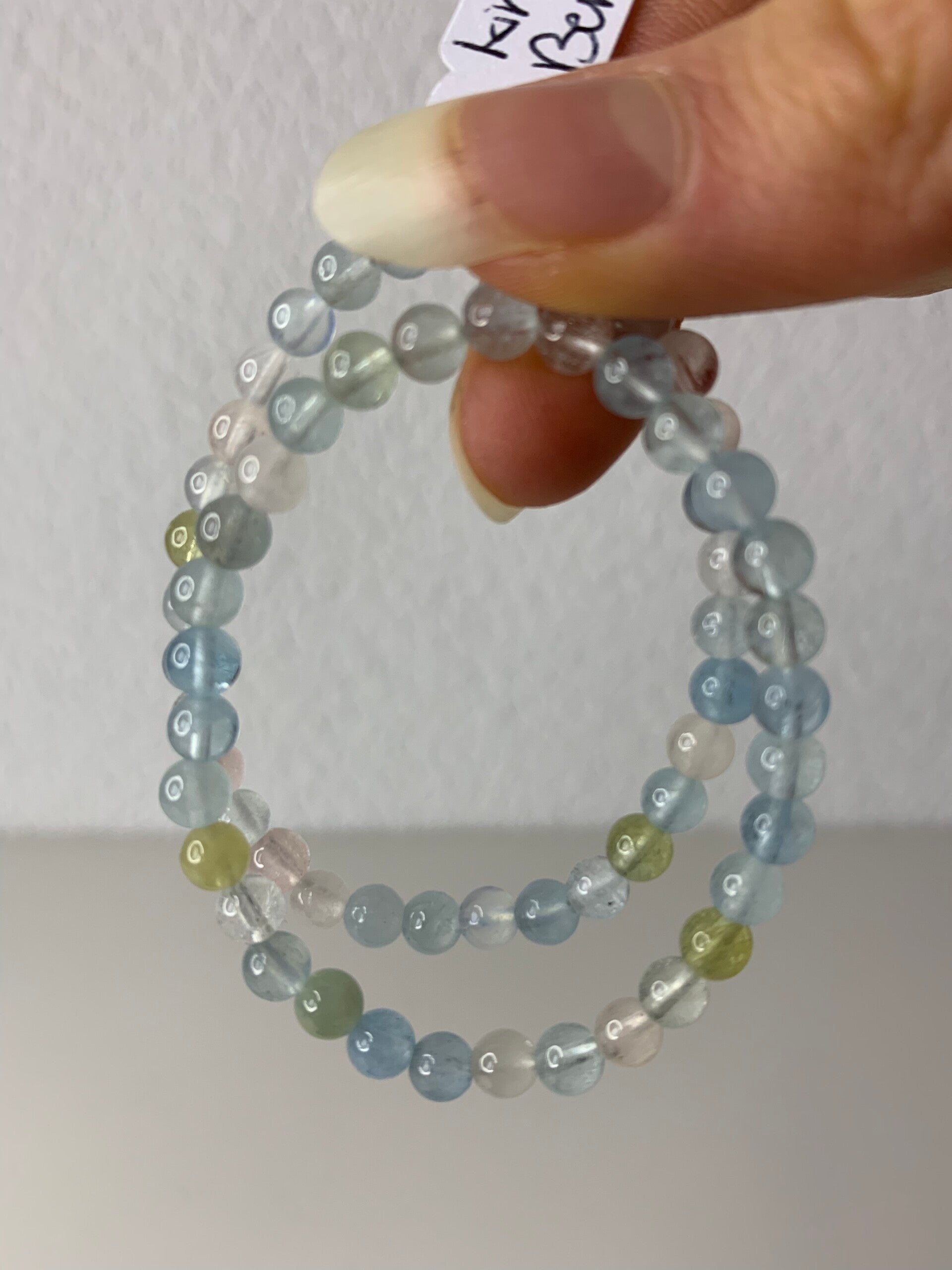 Hoge kwaliteit beryl armband. Beryl is een verzamelnaam en bestaat zoal uit morganiet en aquamarijn. Deze hebben een kleinere polsmaat en zijn geschikt voor kinderen. De prijs is per stuk!