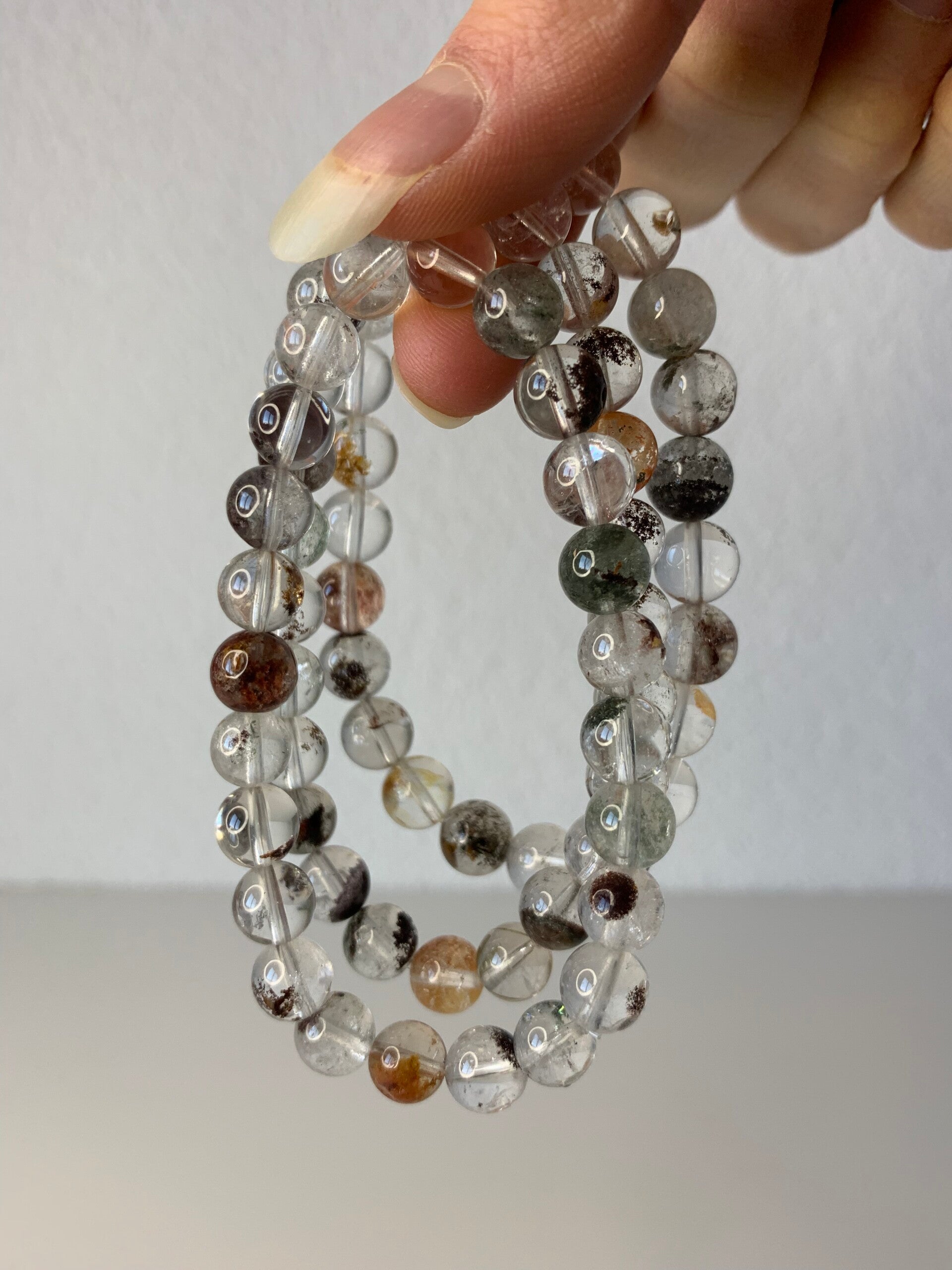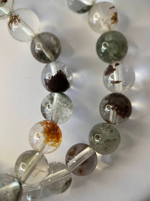 Armband van lodoliet. Elk kraaltje heeft super heldere kwarts met daarin insluitsels van lodoliet. De prijs is per stuk!