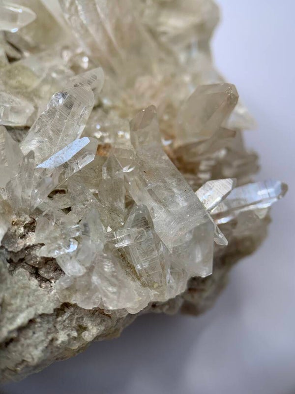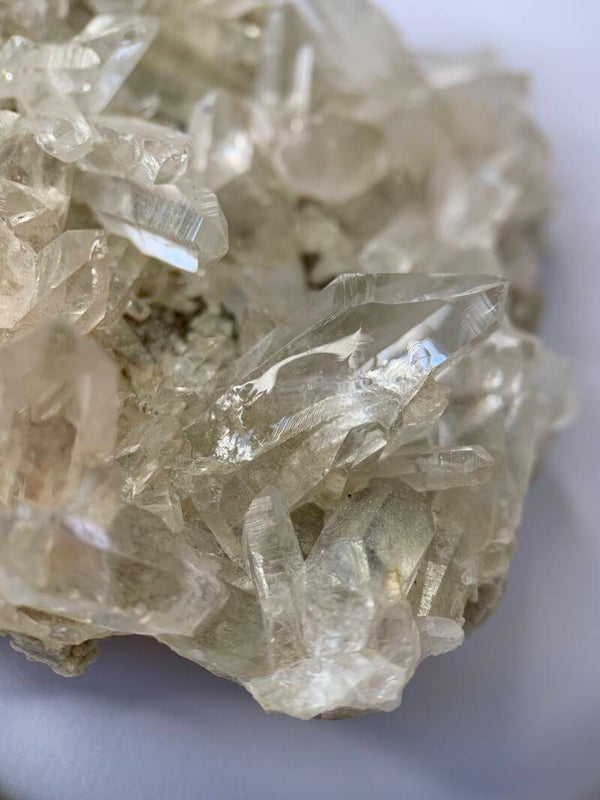 Super heldere cluster van Himalaya bergkristal. Hij heeft prachtige puntjes. De achterkant bestaat uit bariet.
